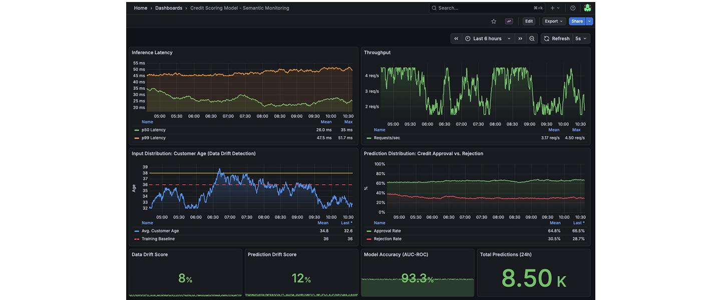 Traditional monitoring (CPU, RAM) is not enough here. To monitor robustness (Art. 15), we need semantic monitoring.